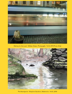 Waiting for the Local - William Alcaro, Photograph, 11x14, $75 (Photo Only) The Brandywine - MaryAnn Goodwin, Watercolor, 14x18, $250
