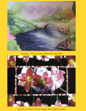 Impression - Tomoko Kitajima, Watercolor, 19x26, $250 Amaryllis - Vicky Culver, Photo Collage, 32x24, $350 (Unframed)