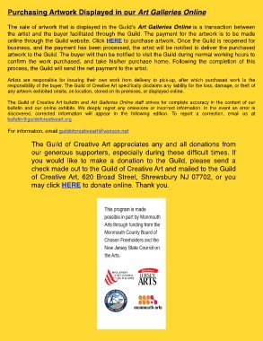 online through the Guild website. Click HERE to purchase artwork. Once the Guild is reopened for