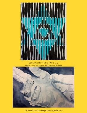 Optical Art: Star of David - David Levy Acrylic on Polycarbonate and Wood, 8x10, $500 The Servant’s Hands - Mary O’Donnell, Watercolor