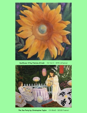 Sunflower VI by Patricia Zilinski Oil 12x12 - $195 Unframed The Tea Party by Christopher Taylor Oil 48x60 - $2500 Framed