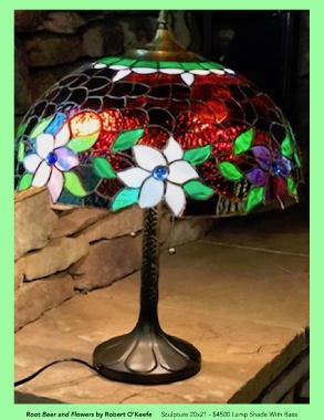 Root Beer and Flowers by Robert O’Keefe Sculpture 20x21 - $4500 Lamp Shade With Base