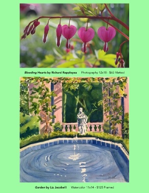 Bleeding Hearts by Richard Rappleyea Photography 12x18 - $65 Matted Garden by Liz Jacobelli Watercolor 11x14 - $125 Framed