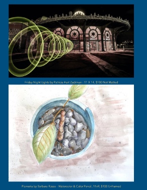 Friday Night Lights by Patricia Hart Zackman - 11 X 14, $100 Not Matted Plumeria by Barbara Russo - Watercolor & Color Pencil, 11x9, $100 Unframed