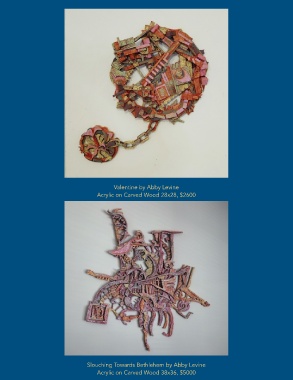 Valentine by Abby Levine Acrylic on Carved Wood 28x28, $2600 Slouching Towards Bethlehem by Abby Levine Acrylic on Carved Wood 38x36, $5000