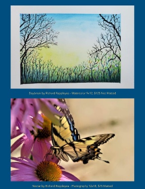 Daybreak by Richard Rappleyea - Watercolor 9x12, $125 Not Matted Nectar by Richard Rappleyea - Photography 12x18, $75 Matted