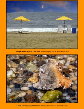 Twilight Beach by Ben DeMarco - Photography 13x19 - $125 Print Only Conch Shell by Angela Previte - Photography 12x18 - $75 Print Only