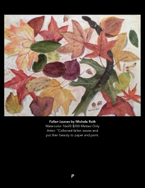 Fallen Leaves by Michele Rath Watercolor 16x20 $200 Matted Only Artist: “Collected fallen leaves and put their beauty to paper and paint. P
