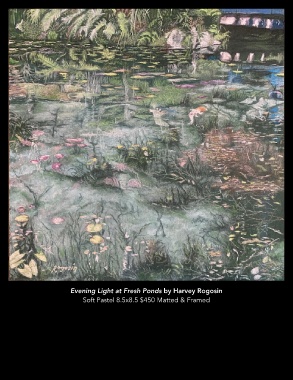 Evening Light at Fresh Ponds by Harvey Rogosin Soft Pastel 8.5x8.5 $450 Matted & Framed