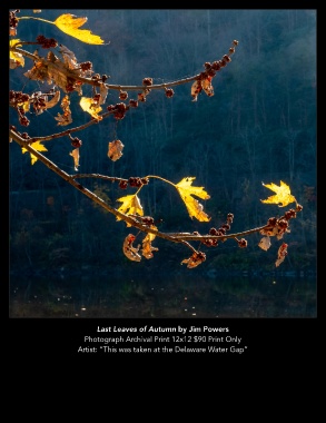 Last Leaves of Autumn by Jim Powers Photograph Archival Print 12x12 $90 Print Only Artist: “This was taken at the Delaware Water Gap”