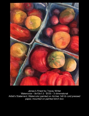 Jersey’s Finest by Tracey Witter Watercolor - 8x10x1.5 - $125 - 3 dimensional Artist’s Statement: Watercolor painted on Arches 140 lb cold pressed paper, mounted on painted birch box