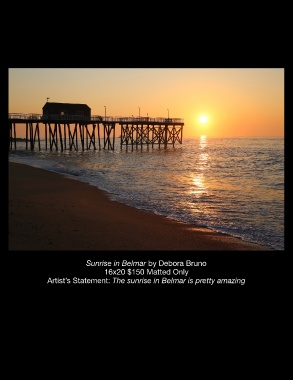 Sunrise in Belmar by Debora Bruno 16x20 $150 Matted Only Artist’s Statement: The sunrise in Belmar is pretty amazing