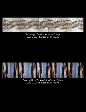 Mustang’s Delight by Vicky Culver 32x10 $375 Matted and Framed Sunrise Over Timbuck II by Vicky Culver 32x10 $300 Matted and Framed