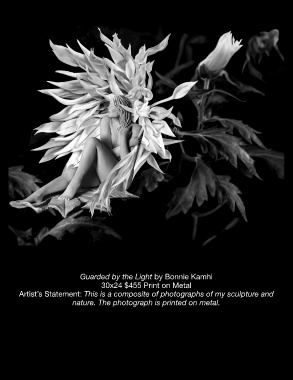 Guarded by the Light by Bonnie Kamhi 30x24 $455 Print on Metal Artist’s Statement: This is a composite of photographs of my sculpture and nature. The photograph is printed on metal.
