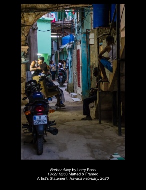 Barber Alley by Larry Ross 19x27 $250 Matted & Framed Artist’s Statement: Havana February, 2020