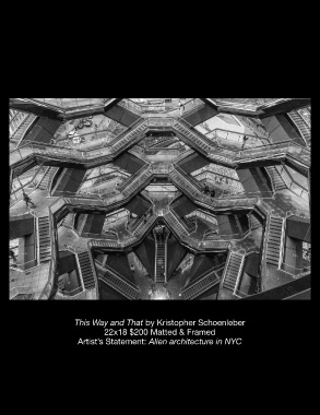 This Way and That by Kristopher Schoenleber 22x18 $200 Matted & Framed Artist’s Statement: Alien architecture in NYC