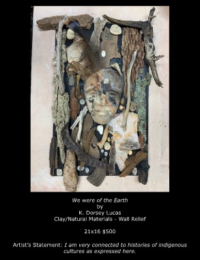 We were of the Earth by K. Dorsey Lucas Clay/Natural Materials - Wall Relief 21x16 $500 Artist’s Statement: I am very connected to histories of indigenous cultures as expressed here.