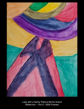 Lady with a Hat by Patricia Monto Autore Watercolor - 15x12 - $200 Framed