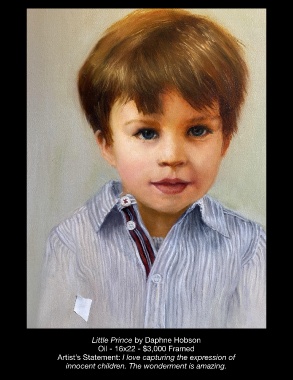 Little Prince by Daphne Hobson Oil - 16x22 - $3,000 Framed Artist’s Statement: I love capturing the expression of innocent children. The wonderment is amazing.