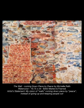 The Wall - coming Down Piece by Peace by Michelle Rath Watercolor - 19.75 x 24 - $450 Matted & Framed Artist’s Statement: My vision of “walls” coming down piece by “peace”, instead of going up and keeping people out