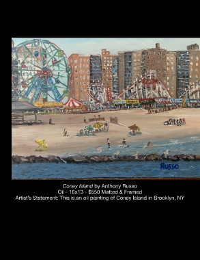 Coney Island by Anthony Russo Oil - 16x13 - $550 Matted & Framed Artist’s Statement: This is an oil painting of Coney Island in Brooklyn, NY