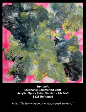 Honolulu Stephanie Sommerlad Bello Acrylic, Spray Paint, Varnish - 24x24x2 $225 Unframed Artist: “Gallery wrapped canvas; signed en verso.”